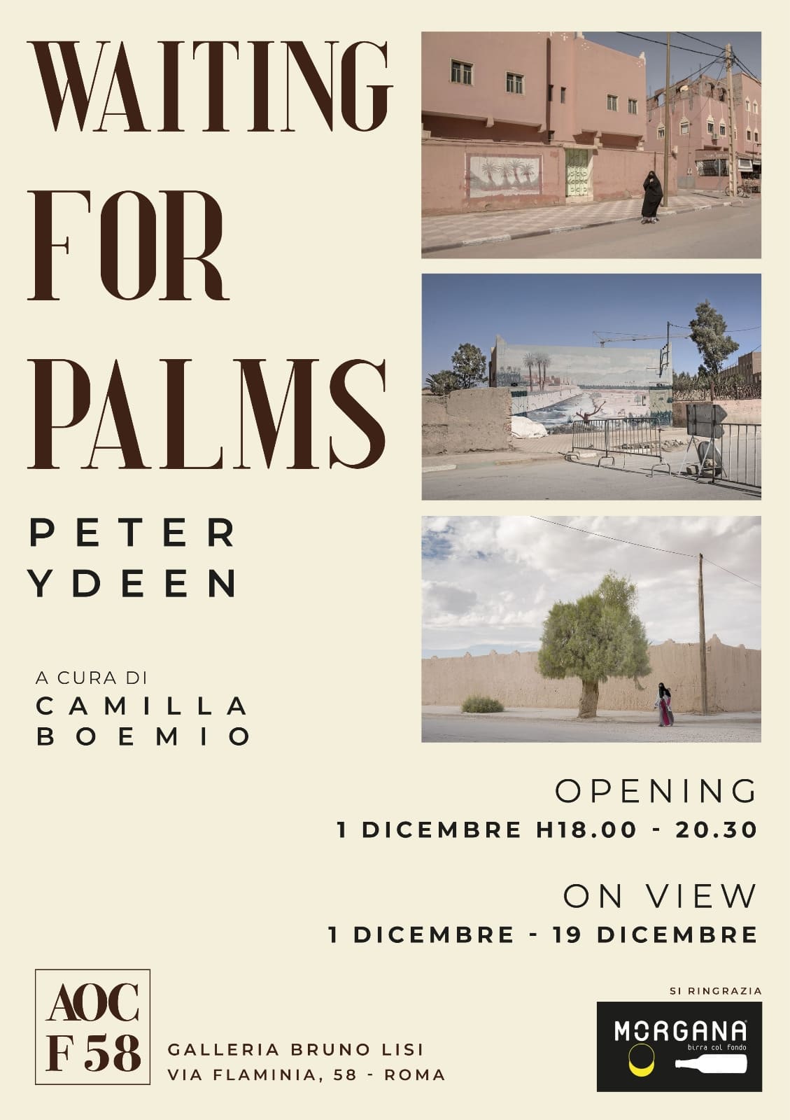 Dal 1° al 19 dicembre 2025, la AOC F58 – Galleria Bruno Lisi di Roma ospita la mostra fotografica “Waiting for Palms” di Peter Ydeen, a cura di Camilla Boemio, con il supporto tecnico di Birra Morgana.