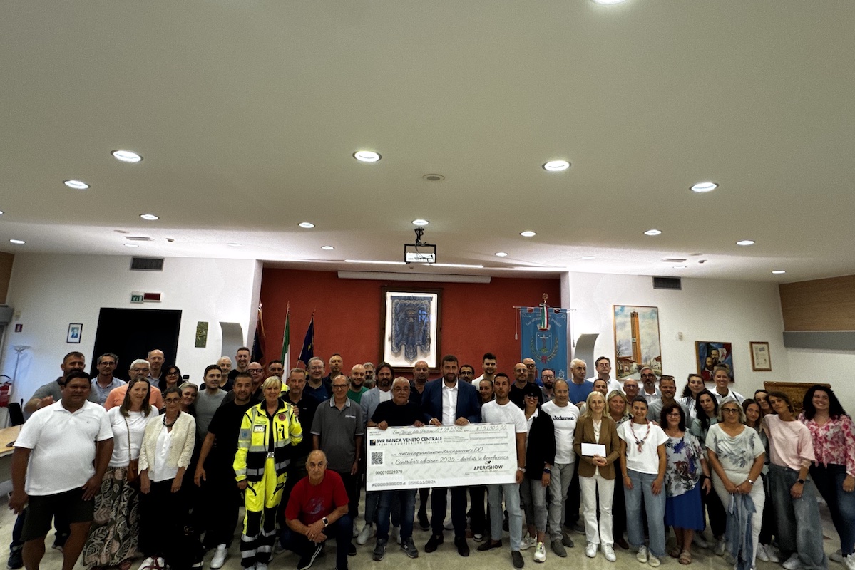 L’utile raccolto è stato 151.500 euro. Una somma che nella serata di martedì 9 settembre 2025 (ieri) è stata consegnata alle diverse associazioni del terzo settore coinvolte in questa decima edizione di Aperyshow, ovvero la Fondazione Giulia Cecchettin Ets, I Bambini delle Fate, Braccio di Ferro e Fratelli Dimenticati. Parte dei proventi sarà altresì destinato alla realizzazione di un parco giochi inclusivo a San Giorgio delle Pertiche ed al sostegno della Parrocchia dei Santi Martino e Lamberto in Arsego.